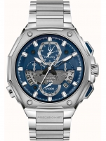 • Manufacturer no.: 96B349 • Manufacturer series: Precisionist Chronograph 46mm • Functions: Chronograph, Date, Hour, Minute, Second • Movement: Battery (quartz) • Dial color: Blue • Display: Analog • Water resistant: 30 • Bezel: Fixed • Surface finish: Matted, Polished • Case color: Silver • Case material: Stainless steel • Case thickness: 18 • Case shape: Round • Case width: 46 • Caseback: screwed, Stainless steel bottom • Gender: Mens • Crown: Screwed • Glas: anti-reflecting, Saphire glass • Lighting: Illumin. hands, Illumin. indexes • Style: Sporty • Strap material: Stainless steel • Strap color: Silver • Lug width: 24 • Clasp: Butterfly clasp • Max wrist circumferences: 225 • Item weight: 0.29 • Scope of delivery: Box, Instruction, Packaging, Warranty documents