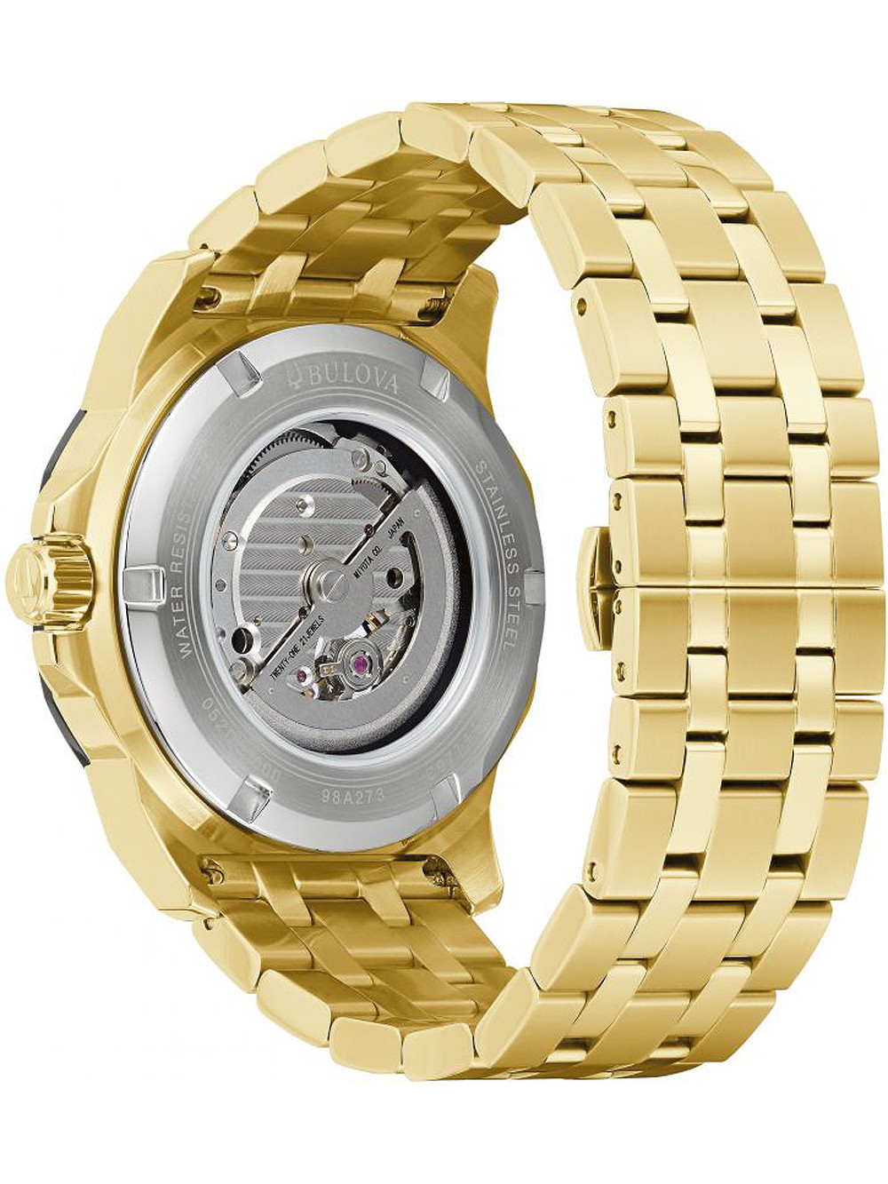 • Manufacturer no.: 98A273 • Manufacturer series: Marine Star automatic 45mm • Functions: Hour, Minute, Second • Movement: Automatic • Dial color: Black • Display: Analog • Water resistant: 20 • Bezel: Fixed • Surface finish: Matted, Polished • Case color: Gold • Case material: Stainless steel • Case thickness: 14 • Case shape: Round • Case width: 45 • Caseback: Glas bottom, screwed • Gender: Mens • Glas: hardened, Mineral glass • Lighting: Illumin. hands • Style: Sporty • Strap material: Stainless steel • Strap color: Gold • Lug width: 24 • Clasp: Butterfly clasp • Max wrist circumferences: 220 • Item weight: 0.22 • Scope of delivery: Box, Instruction, Packaging, Warranty documents