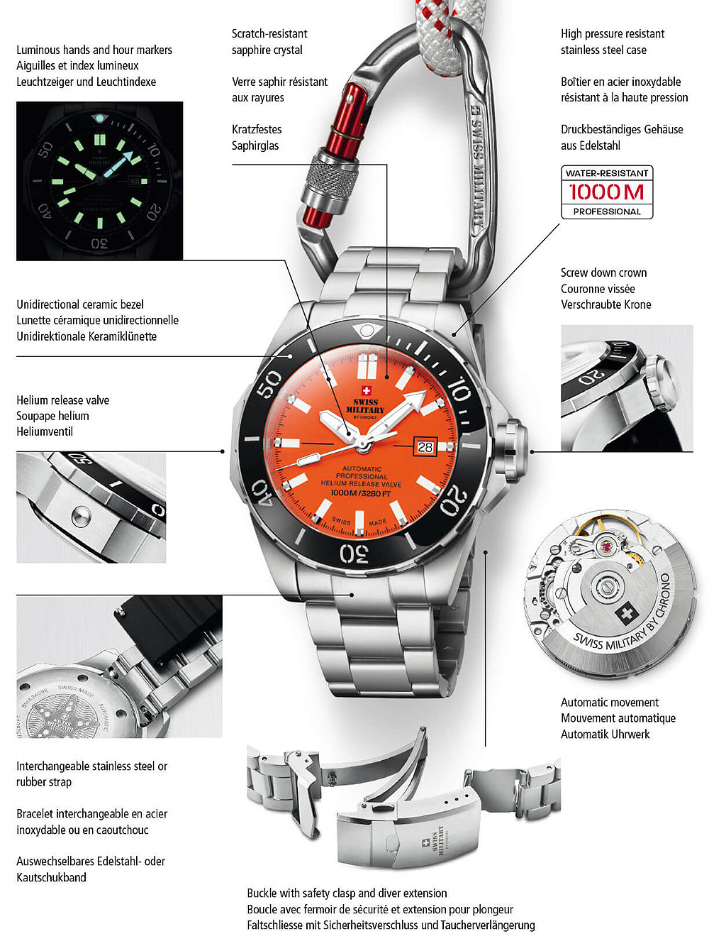 • Manufacturer no.: SMA34092.07 • Manufacturer series: automatic Diver 45mm • Functions: Date, Hour, Minute, Second • Movement: Automatic • Dial color: Orange • Display: Analog • Water resistant: 100 • Bezel: counterclockwise, Turnable • Surface finish: Matted, Polished • Case color: Silver • Case material: Stainless steel • Case thickness: 16 • Case width: 45 • Caseback: screwed, Stainless steel bottom • Gender: Mens • Crown: Screwed • Glas: anti-reflecting, Saphire glass • Lighting: Illumin. hands, Illumin. indexes • Style: Sporty • Strap material: Silicon • Strap color: Orange • Lug width: 22 • Clasp: Buckle clasp • Max wrist circumferences: 230 • Item weight: 0.16 • Scope of delivery: Box, Instruction, Packaging, Warranty documents