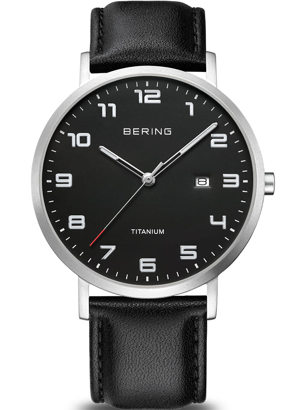 • Manufacturer no.: 18640-402 • Manufacturer series: Herren Titanium 40mm • Functions: Date, Hour, Minute, Second • Movement: Battery (quartz) • Dial color: Black • Display: Analog • Water resistant: 5 • Bezel: Fixed • Surface finish: Matted • Case color: Silver • Case material: Titanium • Case thickness: 7 • Case shape: Round • Case width: 40 • Caseback: screwed, Titanium bottom • Gender: Mens • Glas: anti-reflecting, Saphire glass • Lighting: Illumin. hands • Style: Classic • Strap material: Calf leather • Strap color: Black • Lug width: 20 • Clasp: Buckle clasp • Max wrist circumferences: 220 • Item weight: 0.03 • Scope of delivery: Box, Instruction, Packaging, Warranty documents