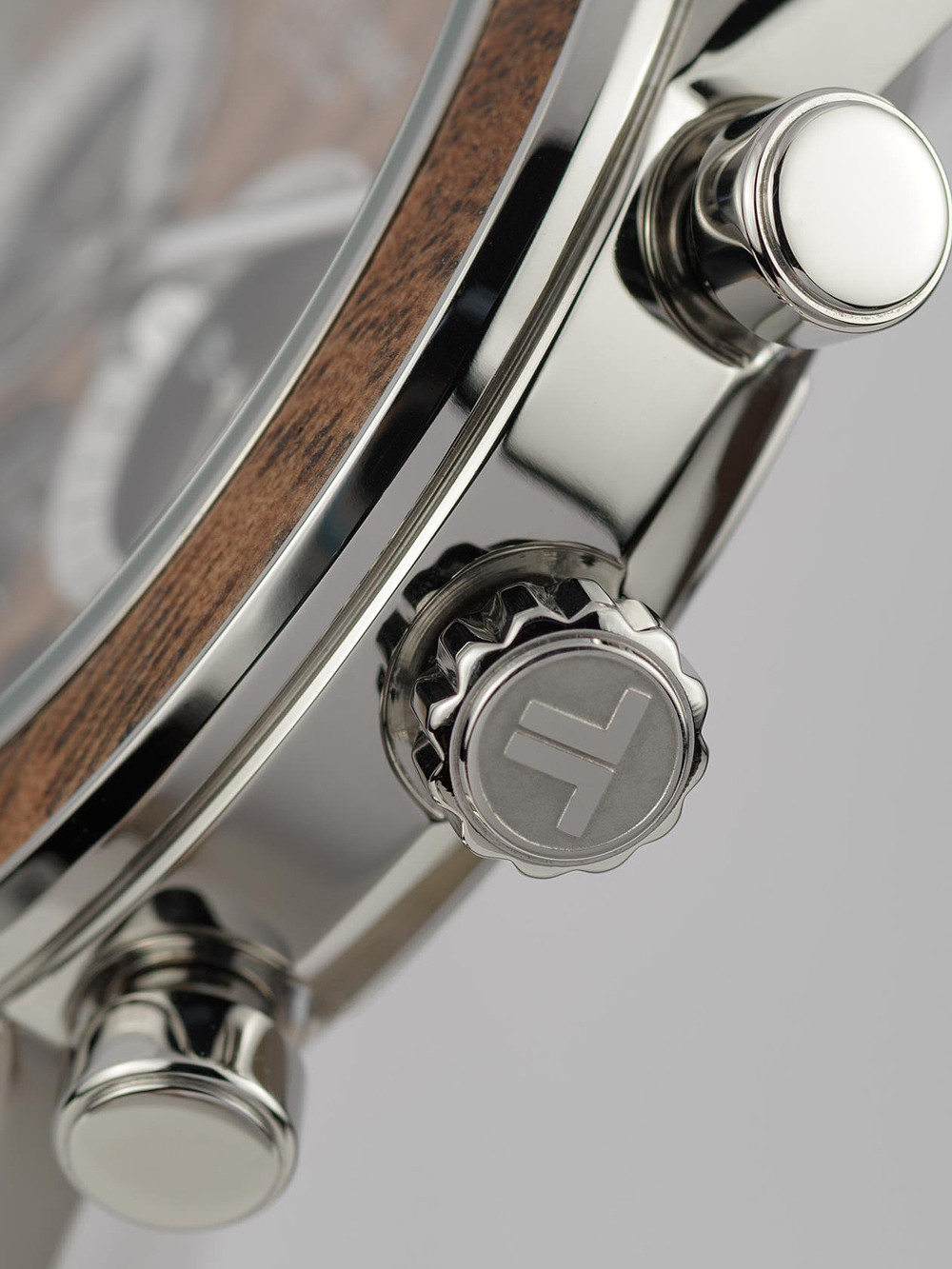 • Manufacturer no.: 1-2115B • Manufacturer series: Eco Power 44mm • Functions: 24-hours, Chronograph, Date, Hour, Minute, Second • Movement: Solar (quartz) • Dial color: Brown • Display: Analog • Water resistant: 10 • Bezel: Fixed • Surface finish: Matted, Polished • Case color: Silver • Case material: Stainless steel • Case thickness: 12 • Case shape: Round • Case width: 44 • Caseback: screwed, Stainless steel bottom • Gender: Mens • Glas: hardened, Mineral glass • Lighting: Illumin. hands, Illumin. indexes • Style: Sporty • Strap material: Stainless steel, Wood • Strap color: Brown • Lug width: 22 • Clasp: Buckle clasp • Max wrist circumferences: 220 • Item weight: 0.07