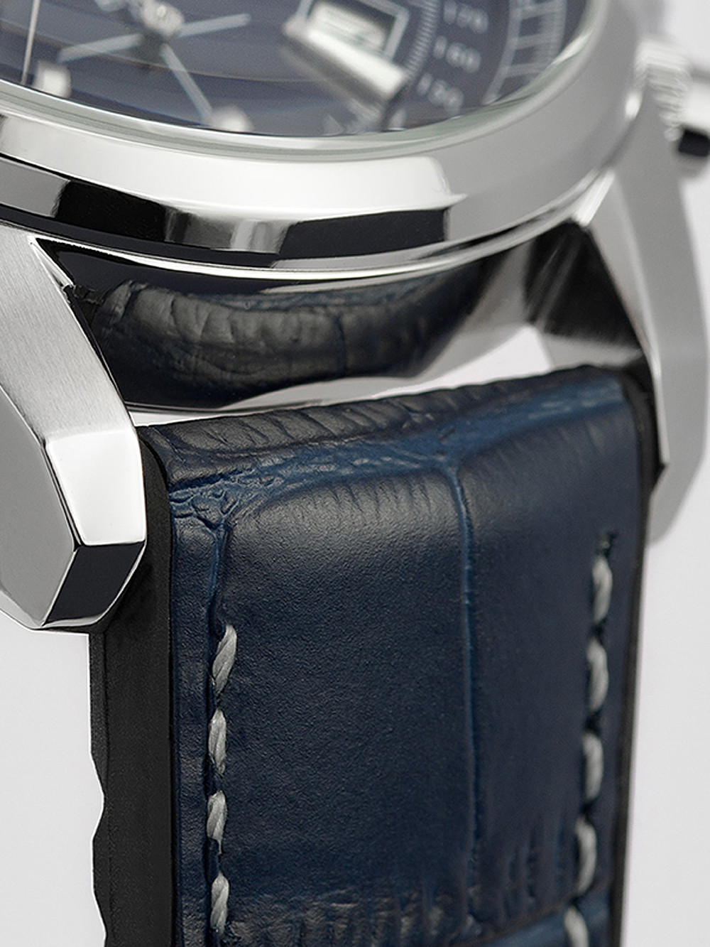 • Manufacturer no.: 1-2117C • Manufacturer series: Liverpool chronograph 44mm • Functions: 24-hours, Chronograph, Date, Hour, Minute, Second • Movement: Battery (quartz) • Dial color: Blue • Display: Analog • Water resistant: 20 • Bezel: Fixed • Surface finish: Matted, Polished • Case color: Silver • Case material: Stainless steel • Case thickness: 13 • Case shape: Round • Case width: 44 • Caseback: screwed, Stainless steel bottom • Gender: Mens • Crown: Screwed • Glas: hardened, Mineral glass • Lighting: Illumin. hands, Illumin. indexes • Style: Sporty • Strap material: Calf leather, Silicon • Strap color: Blue • Lug width: 22 • Clasp: Buckle clasp • Max wrist circumferences: 220 • Item weight: 0.09