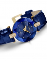 • Manufacturer no.: J5.011.M • Manufacturer series: Facet Strass 29mm • Functions: Hour, Minute • Movement: Battery (quartz) • Movement label: Swiss Made • Dial color: Blue • Display: Analog • Water resistant: 3 • Bezel: Fixed • Surface finish: Polished • Case color: Gold • Case material: Stainless steel • Case thickness: 9 • Case shape: Round • Case trimming: Zirconia • Case width: 29 • Caseback: screwed, Stainless steel bottom • Gender: Ladies • Glas: hardened, Mineral glass • Style: Elegant • Strap material: Calf leather • Strap color: Blue • Lug width: 18 • Clasp: Buckle clasp • Max wrist circumferences: 190 • Item weight: 0.03 • Scope of delivery: Box, Instruction, Packaging, Warranty documents