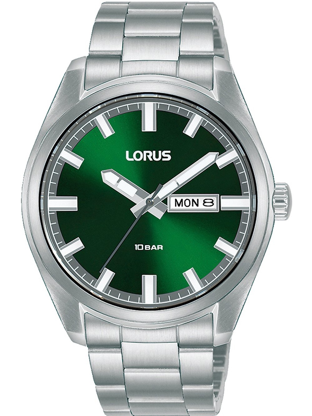 • Manufacturer no.: RH351AX9 • Manufacturer series: sport 40mm • Functions: Date, Day, Hour, Minute, Second • Movement: Battery (quartz) • Dial color: Green • Display: Analog • Water resistant: 10 • Bezel: Fixed • Surface finish: Matted, Polished • Case color: Silver • Case material: Stainless steel • Case thickness: 10 • Case shape: Round • Case width: 40 • Caseback: pressed, Stainless steel bottom • Gender: Mens • Glas: hardened, Mineral glass • Lighting: Illumin. hands • Style: Sporty • Strap material: Stainless steel • Strap color: Silver • Lug width: 20 • Clasp: Folding clasp • Max wrist circumferences: 200 • Item weight: 0.11 • Scope of delivery: Box, Instruction, Packaging, Warranty documents