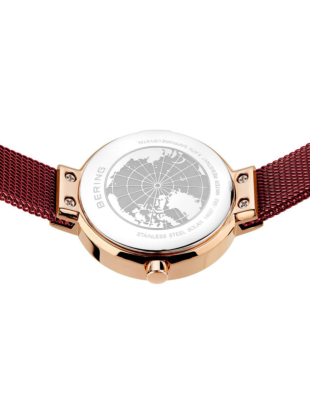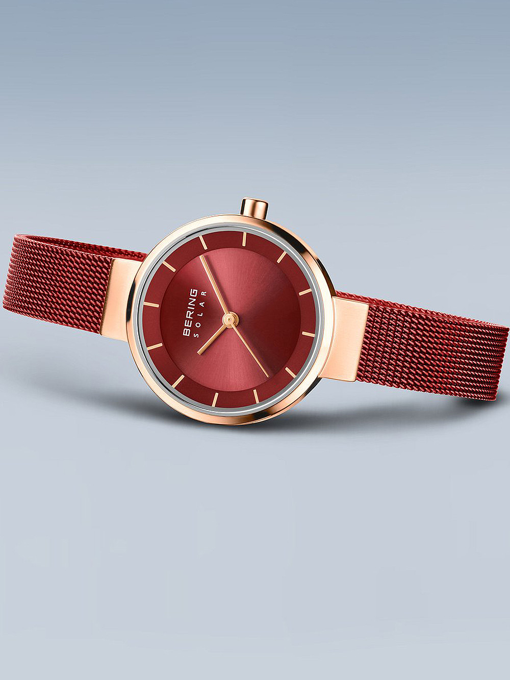 • Manufacturer no.: 14627-363 • Manufacturer series: Damen Solar 27mm • Functions: Hour, Minute, Second, Solar • Movement: Solar (quartz) • Dial color: Red • Display: Analog • Water resistant: 5 • Bezel: Fixed • Surface finish: Polished • Case color: Rosé gold • Case material: Stainless steel • Case thickness: 9 • Case shape: Round • Case width: 27 • Caseback: pressed, Stainless steel bottom • Gender: Ladies • Glas: anti-reflecting, Saphire glass • Style: Classic • Strap material: Stainless steel • Strap color: Red • Lug width: 10 • Clasp: Clip clasp • Max wrist circumferences: 190 • Item weight: 0.03 • Scope of delivery: Box, Instruction, Packaging, Warranty documents