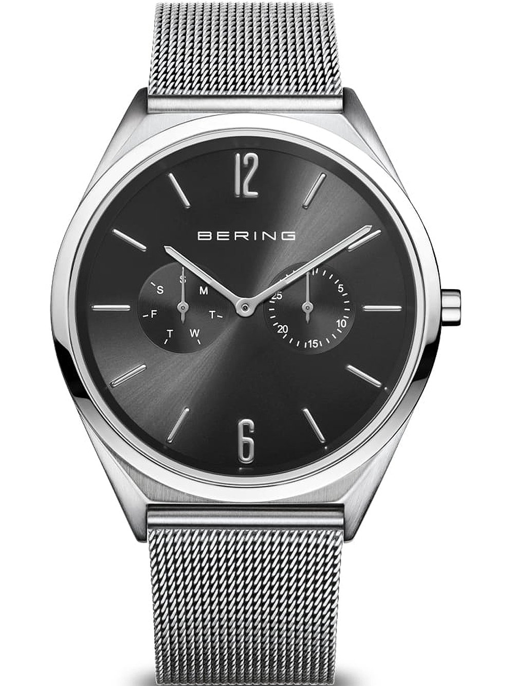• Manufacturer no.: 17140-002 • Manufacturer series: Unisex Ultra Slim 40mm • Functions: Date, Hour, Minute, Second • Movement: Battery (quartz) • Dial color: Black • Display: Analog • Water resistant: 3 • Bezel: Fixed • Surface finish: Polished • Case color: Silver • Case material: Stainless steel • Case thickness: 7 • Case shape: Round • Case width: 40 • Caseback: pressed, Stainless steel bottom • Gender: Ladies, Mens, Unisex • Glas: anti-reflecting, Saphire glass • Lighting: Illumin. hands • Style: Classic • Strap material: Stainless steel • Strap color: Silver • Lug width: 20 • Clasp: Clip clasp • Max wrist circumferences: 210 • Item weight: 0.07 • Scope of delivery: Box, Instruction, Packaging, Warranty documents