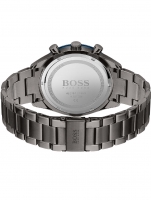 Brand: Hugo Boss Brand: Hugo Boss • Manufacturer no.: 1513863 • Manufacturer series: Santiago 44mm • Functions: 12-/24 time mode, Date, Hour, Minute, Second • Movement: Battery (quartz) • Dial color: Blue • Display: Analog • Water resistant: 5 • Bezel: Fixed • Surface finish: Matted, Polished • Case color: Grey • Case material: Stainless steel • Case thickness: 11 • Case width: 44 • Caseback: screwed, Stainless steel bottom • Gender: Mens • Glas: hardened, Mineral glass • Lighting: Illumin. hands, Illumin. indexes • Style: Sporty • Strap material: Stainless steel • Strap color: Grey • Lug width: 22 • Clasp: Folding clasp • Max wrist circumferences: 210 • Item weight: 0.14"