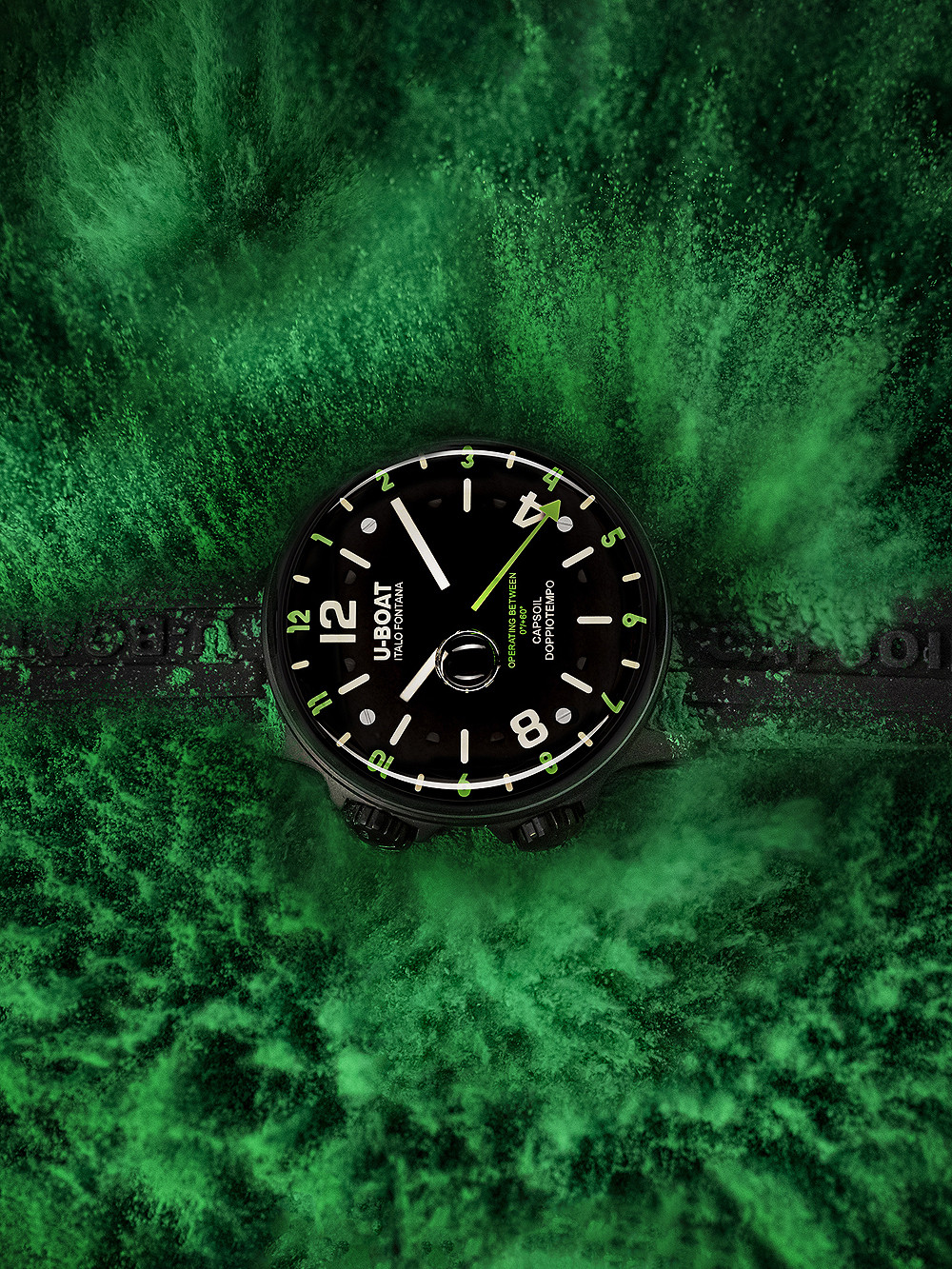 • Manufacturer no.: 8840 • Manufacturer series: Capsoil Doppiotempo DLC GMT 45mm • Functions: 2nd timezone, GMT, Hour, Minute • Movement: Battery (quartz) • Dial color: Black • Display: Analog • Water resistant: 10 • Bezel: Fixed • Surface finish: Matted • Case color: Black • Case material: Stainless steel • Case thickness: 20 • Case shape: Round • Case width: 45 • Caseback: screwed, Stainless steel bottom • Gender: Mens • Crown: Screwed • Glas: anti-reflecting, Saphire glass • Lighting: Illumin. hands, Illumin. indexes • Style: Modern • Strap material: Caoutchouc • Strap color: Black • Lug width: 22 • Clasp: Buckle clasp • Max wrist circumferences: 220 • Item weight: 0.14 • Scope of delivery: Box, Instruction, Packaging, Warranty documents