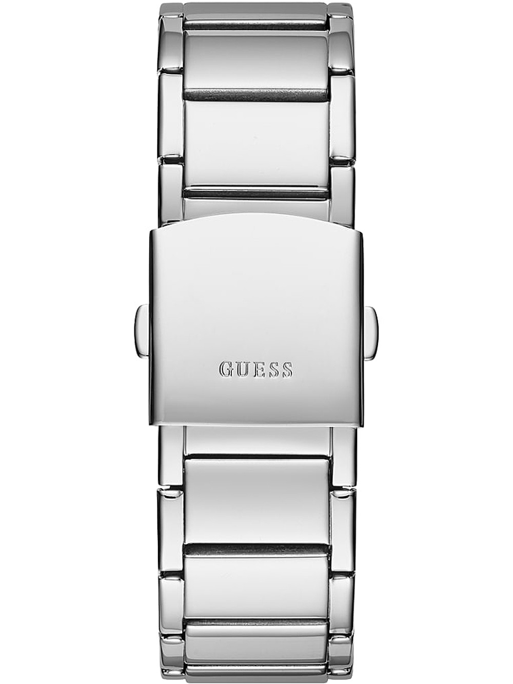 Brand: Guess • Manufacturer no.: GW0209G1 • Manufacturer series: Zeus 47mm • Functions: 24-hours, Date, Day, Hour, Minute, Second • Movement: Battery (quartz) • Dial color: Silver • Display: Analog • Water resistant: 5 • Bezel: Fixed • Surface finish: Matted, Polished • Case color: Silver • Case material: Stainless steel • Case thickness: 5 • Case trimming: Zirconia • Case width: 47 • Caseback: screwed, Stainless steel bottom • Gender: Ladies, Mens, Unisex • Glas: hardened, Mineral glass • Lighting: Illumin. hands • Style: Modern • Strap material: Stainless steel • Strap color: Silver • Lug width: 30 • Clasp: Folding clasp • Max wrist circumferences: 200 • Item weight: 0.19