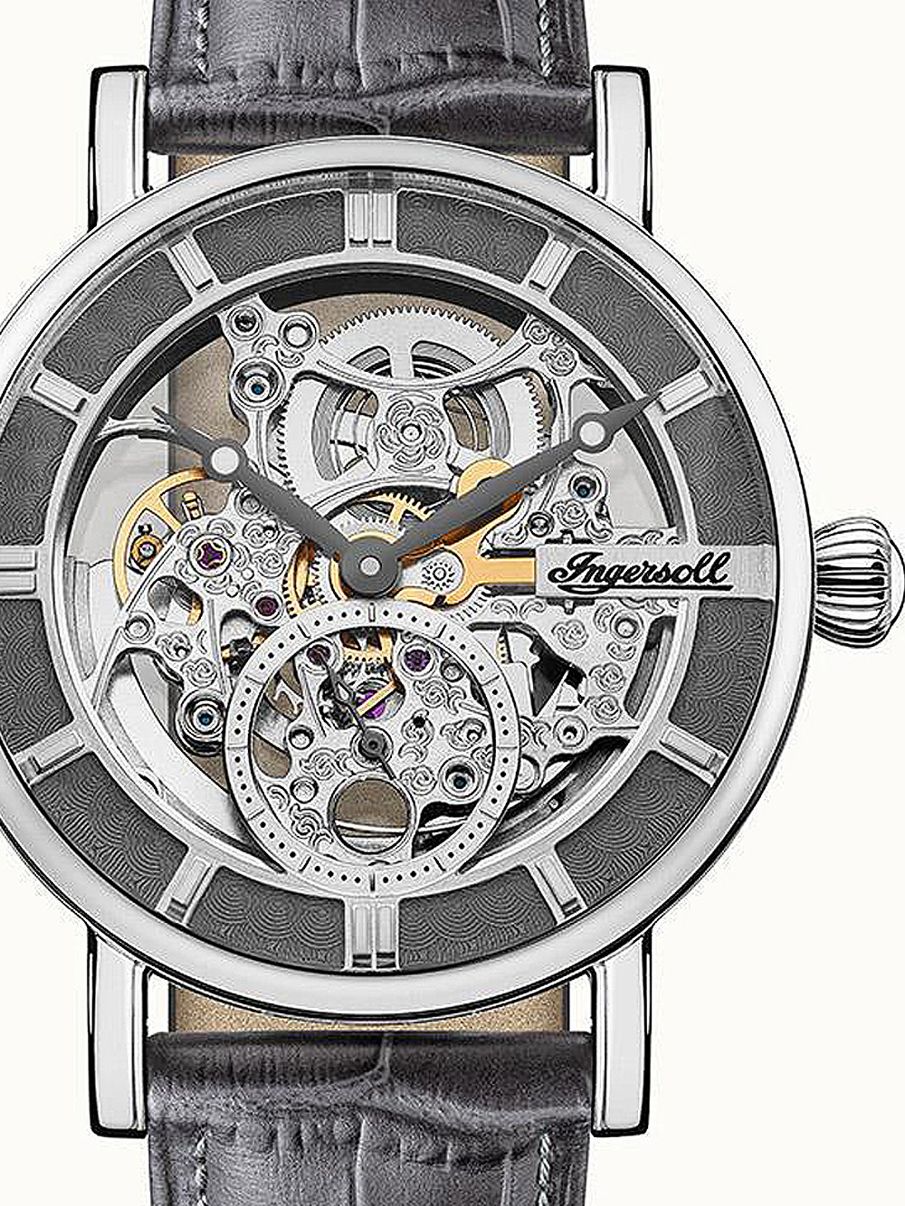 Brand: Ingersoll • Manufacturer no.: I00402B • Manufacturer series: The Herald automatic 40mm I00402B • Functions: Hour, Minute, Second • Movement: Automatic • Dial color: Grey, Silver • Display: Analog • Water resistant: 5 • Bezel: Fixed • Surface finish: Polished • Case color: Silver • Case material: Stainless steel • Case thickness: 14 • Case shape: Round • Case width: 40 • Caseback: Glas bottom, screwed • Gender: Mens • Glas: hardened, Mineral glass • Lighting: Illumin. hands, Illumin. indexes • Style: Classic • Strap material: Calf leather • Strap color: Grey • Lug width: 20 • Clasp: Buckle clasp • Max wrist circumferences: 220 • Item weight: 0.05 • Scope of delivery: Box, Instruction, Packaging, Warranty documents"