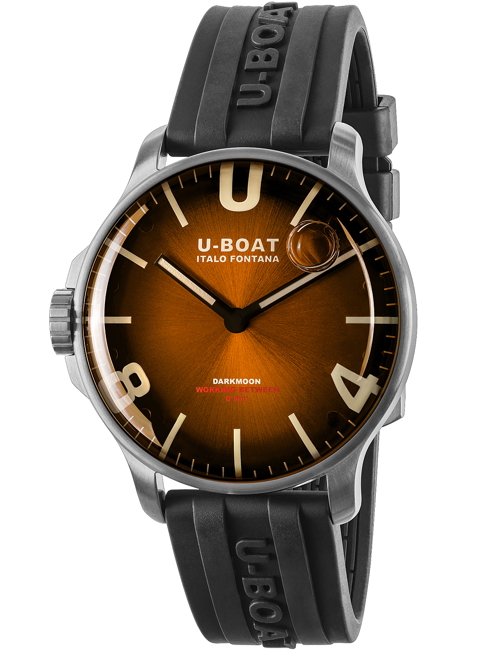 • Manufacturer no.: 8703/B • Manufacturer series: Darkmoon 44mm SS 8703/B • Functions: Hour, Minute • Movement: Battery (quartz) • Movement label: Ronda, 712.3 • Dial color: Brown • Display: Analog • Water resistant: 5 • Bezel: Fixed • Surface finish: Matted • Case color: Silver • Case material: Stainless steel • Case thickness: 18 • Case width: 44 • Caseback: screwed, Stainless steel bottom • Gender: Mens • Crown: Screwed • Glas: anti-reflecting, Saphire glass • Lighting: Illumin. hands, Illumin. indexes • Style: Modern • Strap material: Caoutchouc • Strap color: Black • Lug width: 22 • Clasp: Buckle clasp • Max wrist circumferences: 220 • Item weight: 0.11 • Scope of delivery: Box, Instruction, Packaging, Warranty documents