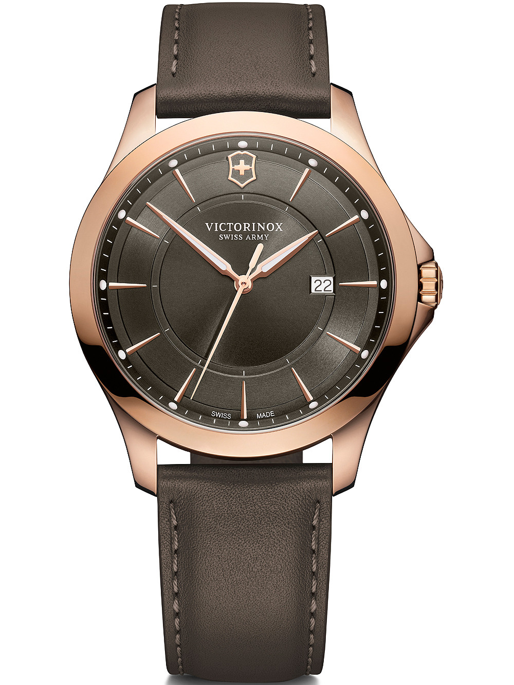 • Manufacturer no.: 241908 • Manufacturer series: Alliance 40mm • Functions: Date, Hour, Minute, Second • Movement: Battery (quartz) • Dial color: Grey • Display: Analog • Water resistant: 10 • Bezel: Fixed • Surface finish: Matted, Polished • Case color: Rosé gold • Case material: Stainless steel • Case thickness: 9 • Case width: 40 • Caseback: screwed, Stainless steel bottom • Gender: Mens • Glas: anti-reflecting, Saphire glass • Lighting: Illumin. hands, Illumin. indexes • Style: Sporty • Strap material: Calf leather • Strap color: Grey • Lug width: 20 • Clasp: Buckle clasp • Max wrist circumferences: 220 • Item weight: 0.06
