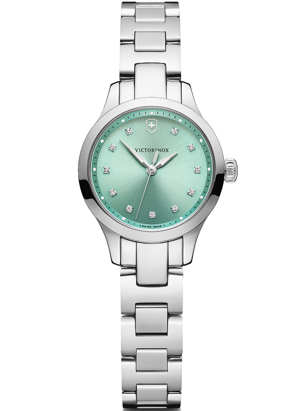 • Manufacturer no.: 241915 • Manufacturer series: Alliance XS 28mm • Functions: Hour, Minute, Second • Movement: Battery (quartz) • Dial color: Blue • Display: Analog • Water resistant: 10 • Bezel: Fixed • Surface finish: Matted, Polished • Case color: Silver • Case material: Stainless steel • Case thickness: 8 • Case trimming: Swarovski • Case width: 28 • Caseback: screwed, Stainless steel bottom • Gender: Ladies • Glas: anti-reflecting, Saphire glass • Lighting: Illumin. hands • Style: Modern • Strap material: Stainless steel • Strap color: Silver • Lug width: 12 • Clasp: Butterfly clasp • Max wrist circumferences: 180 • Item weight: 0.07